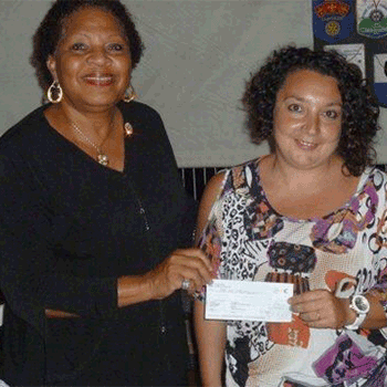 Lors de la dernière réunion du Rotary-Club de Saint-Martin Nord, en présence de Frantz Gumbs, Past-President et membre d'honneur, Josiane Artsen-Fleming, Présidente du club a remis un chèque de 1500 € à Jenika Gervela, enseignante au Collège de Quartier d'Orleans, pour participation aux frais d'un voyage de découverte en France, sur le thème du "Développement durable".